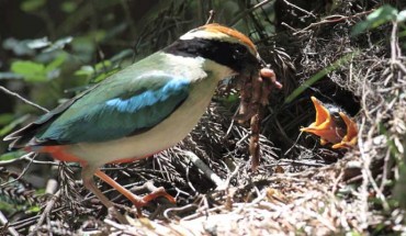 Insect-eating birds that feed nestlings with grasshoppers, beetles, or moths perform insect prey preparation before feeding nestlings so that the nestlings are able to swallow the prey. This behavior is generally not expected for soft prey such as earthworms. However, an overview of photographic evidence available online suggested that earthworms are sundered by parents before bringing the prey to the nestlings in a range of species from several families...