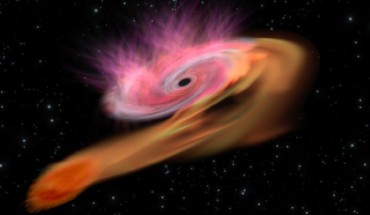 Astronomers have detected radio echoes of a supermassive black hole feeding on a star, suggesting the black hole emits a jet of energy proportional to the stellar material it gobbles up. This artist’s impression shows a supermassive black hole at the center of PGC 43234 accreting mass from a star that dared to venture too close to the galaxy’s center. Image credit: ESA / C. Carreau. Based on theoretical models of black hole evolution and observations...